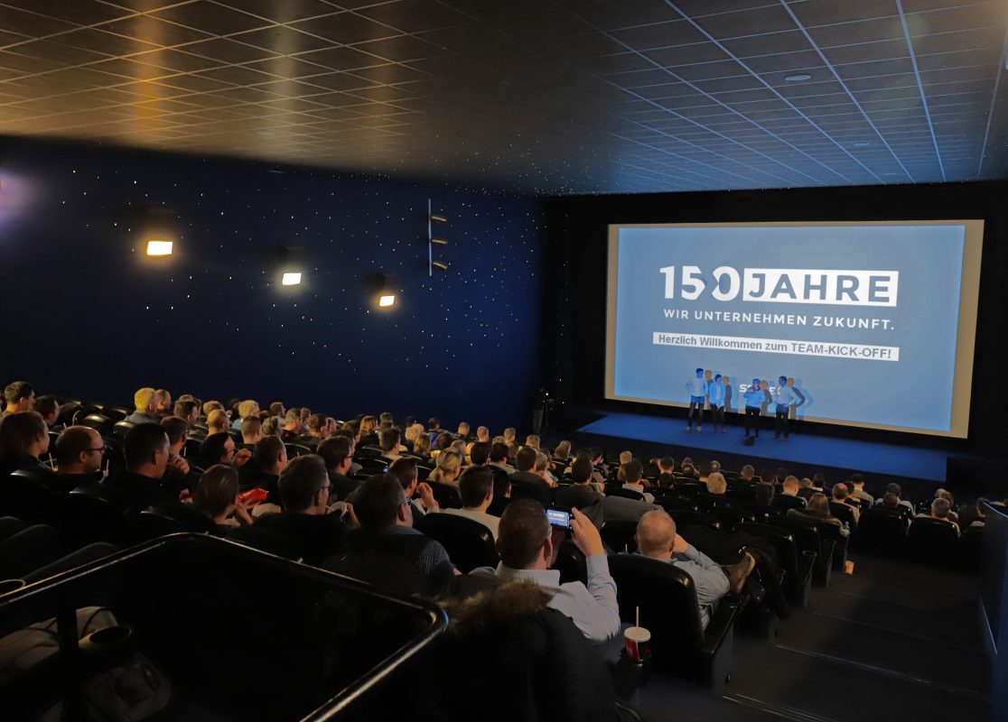 To get in the mood for our anniversary year we started with a great employee event: A joint evening on January 18, 2019 in the large cinema hall 1 of the Bocholter Kinodrom. A film proposed by our team was shown. Afterwards the official barrel tapping with freshly brewed SPALECK anniversary beer took place in a cosy atmosphere in the bistro of the cinema.
