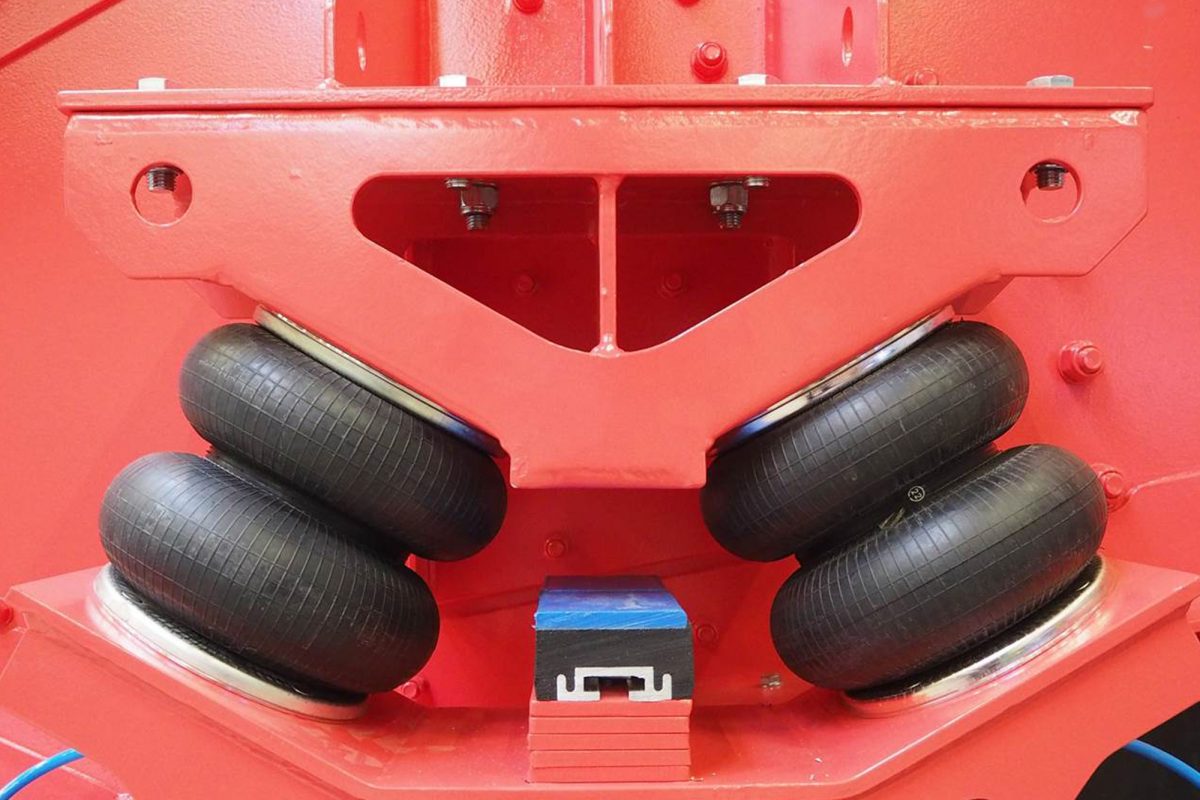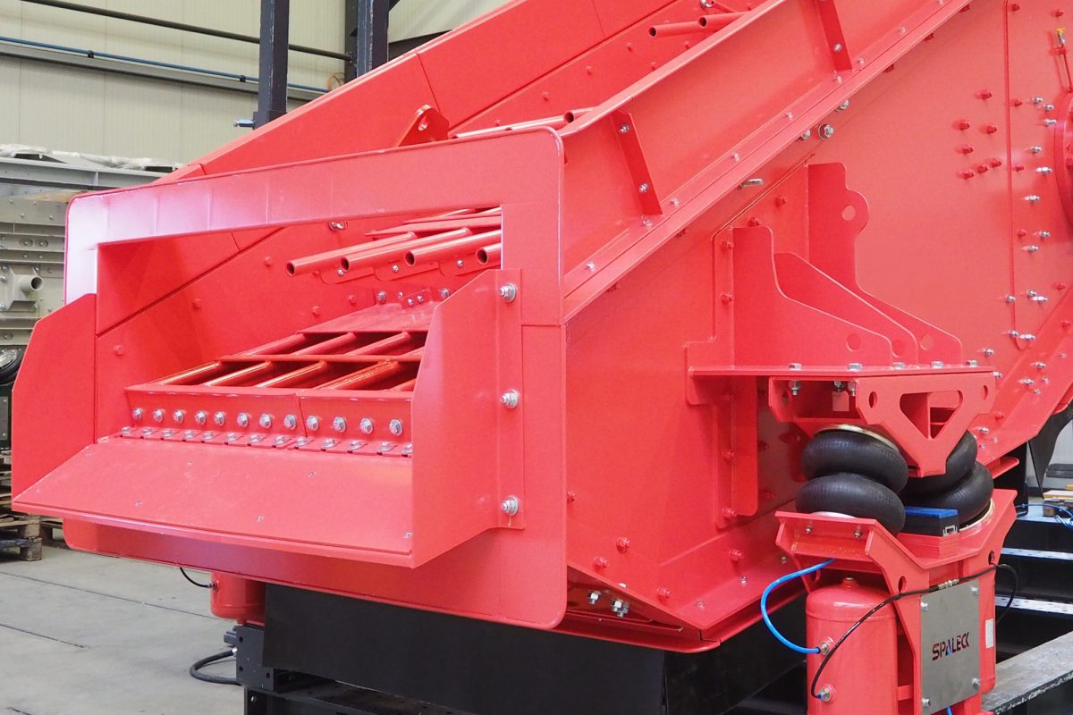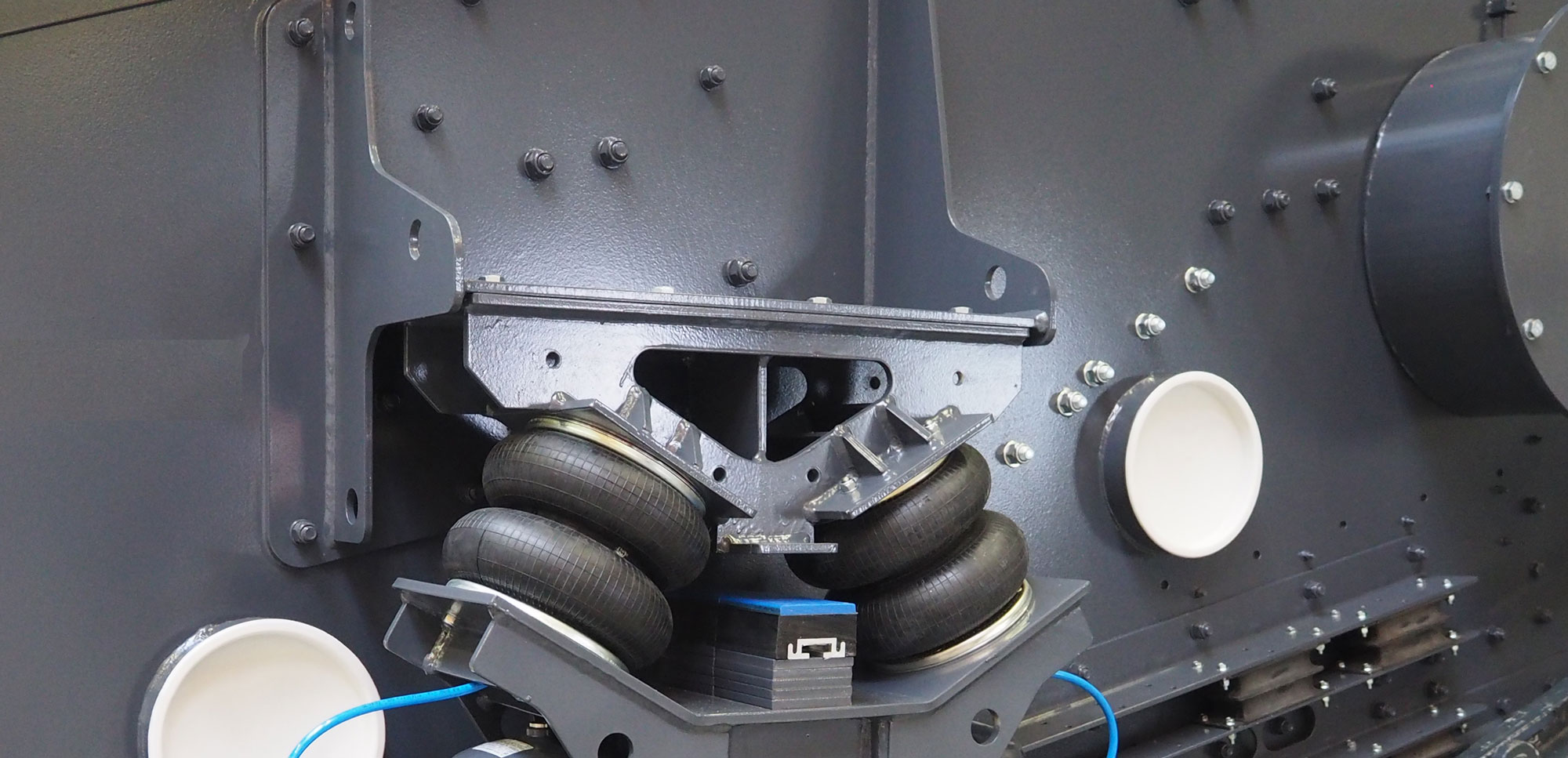 The self-regulating air spring system for screening machines guarantees optimum damping of the screen and almost completely eliminates the vibration loads for surrounding buildings, aggregates and the ground.